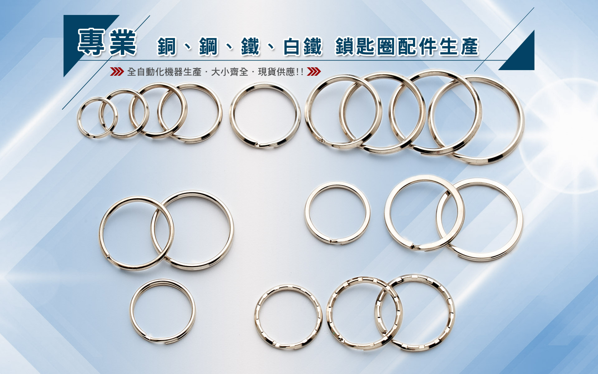 全成锁匙链有限公司成立三十几年专业制造钥匙圈、锁匙圈、钥匙练、锁匙链、钥匙圈配件、锁匙圈配件...等相关五金配件,以全自动化机械生产各种铜、钢、铁、白铁钥匙圈、锁匙圈。